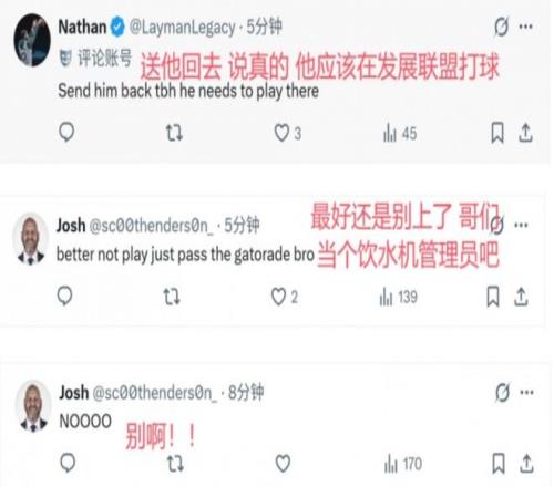 面对如此严峻的人员危机,开拓者管理层迅速做出反应,一项备受关注的决策随之出炉:从G联盟的撕裂之城混音队紧急召回中国中锋杨瀚森,这一操作本是应对危机的常规之举,却在社交媒体上引发了一些不和谐的声音,部分美国球迷带着戏谑的口吻评论道:“说真的,他应该在发展联盟打球!”、“最好还是别上了,哥们儿,就当个饮水机管理员吧。”这些言论,无疑给这位年轻球员的回归蒙上了一层额外的压力