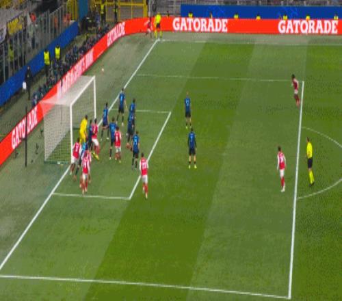 第25分钟,国米反击,小图拉姆劲射打高