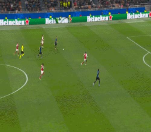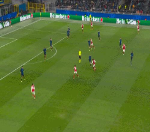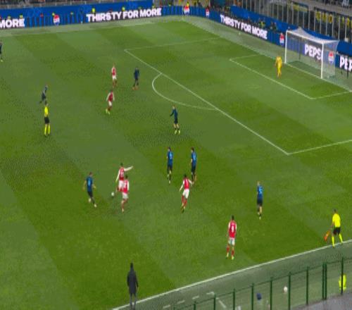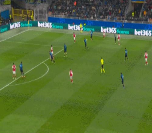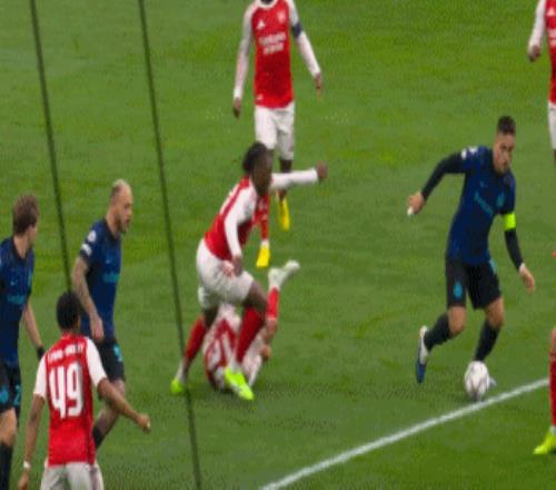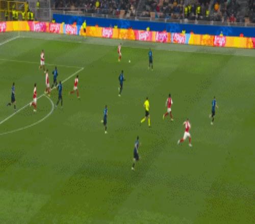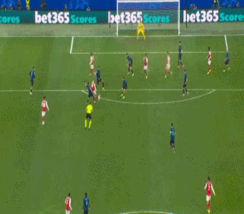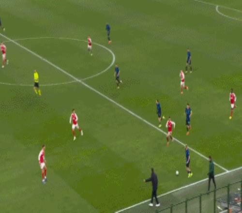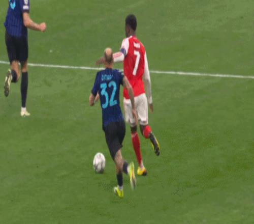 第62分钟,萨卡获得良机,巴斯托尼精彩放铲破坏