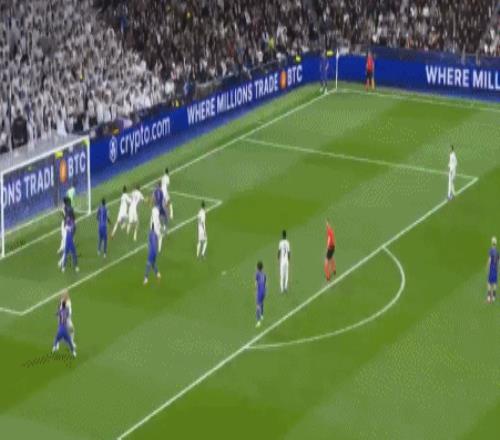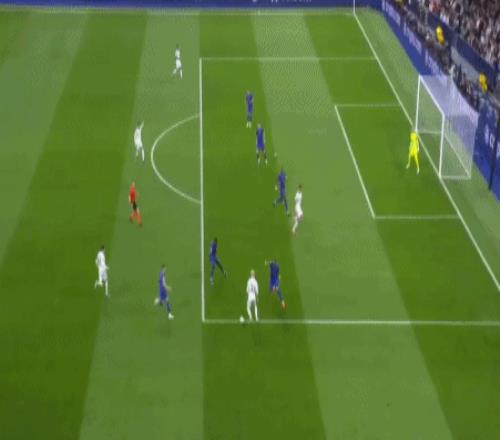 第31分钟,戈洛温左路突破横传,特泽离门30米外起脚兜射,直奔球门右上角而去,击中横梁弹出,皇马逃过一劫。