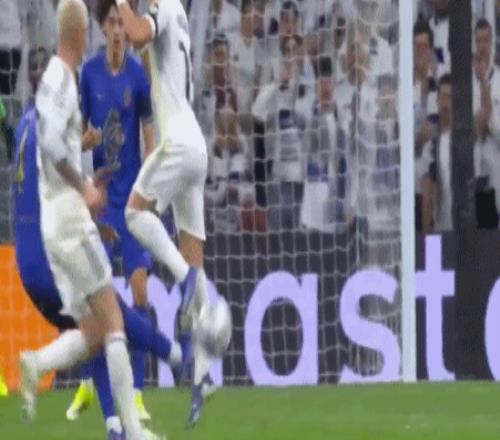 第80分钟,姆巴佩任意球没能越过人墙,但扎卡里亚传球被断,巴尔韦德直塞禁区,赫伊森巧妙一漏,贝林厄姆单刀过掉库恩,小角度推射空门,6-1!